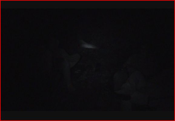 In summary throughout this and session 2 many of the noises could well have been the local wildlife and can be dismissed accordingly however a couple stand out and will be commented upon separately. Lights seen in and around the ruin are hard to explain. The ruin lies well above the road and within very dark woodland. The driveway that runs through the woods is sunken to a depth of around 6 feet (2m) over most of its length. It is unlikely that car headlights would illuminate the trees as we saw here. The instances where the interior of the ruins was seen to illuminate, mainly by Dave, is harder to explain. We had torches but they were not on very often and it was obvious that this was a torchlight however the reported instances occurred during the dark with no immediately obvious light source. The air movement noted by Dave could have been a normal breeze and the woods are on high ground so this could occur without warning, however normally and slight breeze here is noticed in the trees first. Also, in the instance, we were inside the ruins. 90% of the walls are above head height and the chance of an external breeze circulating inside and down to knee height is slim yet possible. Kim feeling like someone was standing right in front of her is difficult to explain. We know from the footage that no one was stood in front of her and none of the team were close enough to give this impression. No one else gave any indication of this feeling but was Kim aware of something that none of the rest of the team were not. Noises thought to be footfalls were distinct. They were heard by various members of the team and were picked up, faintly, on the video recording. These are duller and sound heavier than even the breaking twig noises heard. Nothing was seen on the video that could have caused these. We cannot explain these. The human whistle was alluded to by Dave. It is possible that it was caused by another, natural, source and he mistook it for a human whistle. The fact that no one else heard it may indicate that it was heard but dismissed as naturally occurring. The stagnant smell noted by Dave and later by both Dave and Paddy was distinctly different to the damp woodland smell and was likened to stagnant pond water. There are no known ponds nearby and no damp areas within the wood. Its source is unknown. A 'groan' type noise heard by both Kim and Dave cannot be accounted for. It can be heard on the footage and judged on its own merits. It was not one of the team and is distinctly human in sound. There were no other persons present who could have caused this. The figure with the orange eyes was seen in greater or lesser detail by all of the team. Descriptions differ slightly but the general perception is the same. During the break we recorded Dave and Paddy attempting to see if its height and location could be accurately placed. It was judged to be as high as an average man who was squatting on his haunches and at this height, even in front of the camera where it was judged to be, it would annoyingly be below the height of the lens of the video camera and this may be why nothing appears on film. A similarly described figure was noted at a previous investigation at West Malling Airfield and we have looked into reported sightings of similar figures in other parts of Kent. We have no explanation for what we saw. Both Kim and Paddy described how they now felt tearful, and yet this cannot be explained how only half of the team felt this emotion. The buzzing in Kim's ear is something the team have come across before at other locations. We cannot explain this although it is akin to tinnitus and happens more often at quiet locations after a period of noise. Kim stated that she felt as though her right arm had been touched. The footage shows that none of the team did this nor were they in range to have done so accidentally and not known. Nothing was seen to cause this. This could have been imagined or been caused by the slightest movement of Kim's arm within her jacket. Session 2 General noises and lights as described above in the session 1 section. The light anomaly caught on the camera was slowed and watched