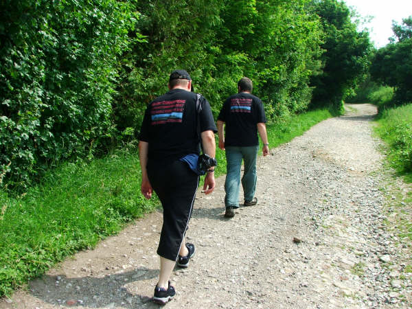 The next day dawned early after only a few hours sleep due to a party atmosphere elsewhere on the camp until well after 1am and all of us up before 7am. The day dawned bright and sunny and the Ring was beckoning us from below. First stop, though, was breakfast at the local Sainsburies. A few accidents with food and drink later and we left full up for the hike. On the way we paused at Findon Church but its best to keep this in context until we explain the reason for our church quest with the other two of the benefice which we saw the next day. All will be revealed. Its a 2 mile walk from a parking area by the A24 at Washington up a steep flint laden chalk path to the summit at 779ft. The views from the track are breathtaking and allegedly from the top you can see the Isle Of Wight on a clear day. It wasn't that clear and we couldn't see that far. |
