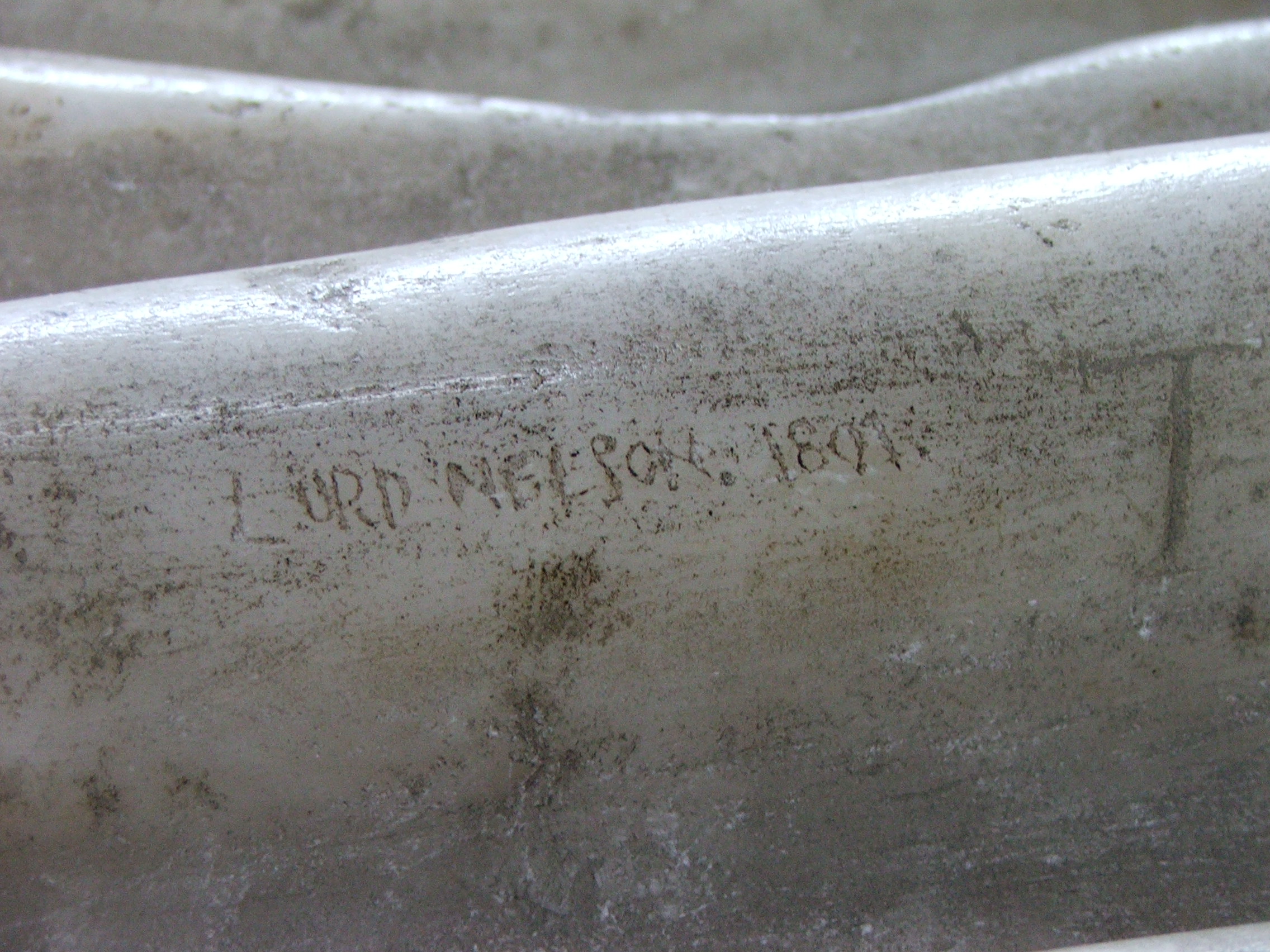 Now you may be able to spot the Norman window second from the right ground floor. Outwardly this is the only part of the 12th Century castle left in the main residential part. There is more inside but it has been incorporated into the Victorian sterility that pervades inside. Magnificent though it is somehow you never feel at home here. Other parts of the castle are original, mind you, including the shell keep overlooking both baileys. Yes it has two following the lines of Windsor. Anyhow the various bits open a different times so first stop was the Fitzalan Chapel. The first Earls of Norfolk were Fitzalans and rebuilt the parish church and made the east end their own chapel. It is still catholic and believed to be the only case of its kind in England. It is only accessible from the castle grounds and this has got to be seen to be believed. A mediaeval masterpiece in sculpture containing the owners and their wives in magnificent tombs. That of the 5th Earl and his wife (the daughter of the king of Portugal) caught our eye. He died of dysentery at the siege of Harfleur in 1415 fighting alongside Henry V. Like many old tombs through the ages they suffered from a bit of vandalism and graffiti. Would a national hero desecrate a tomb 4 years before his own glorious death? See the picture below and make you own mind up as we await a response from the castle on the legitimacy of Horatio's spot of criminal damage!