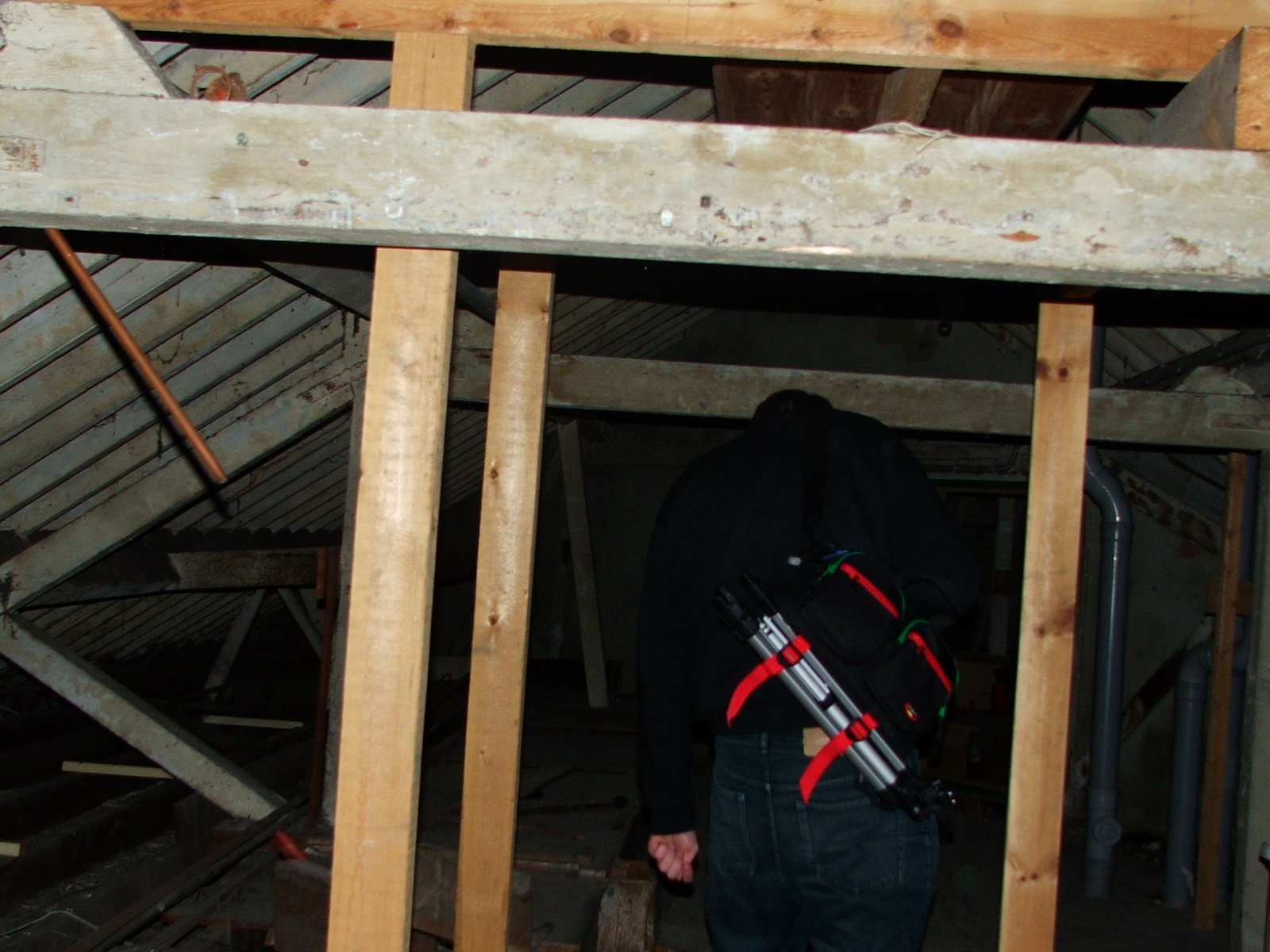 We arrived at the venue just before 8pm. We were given a brief tour of the building by the security guard. The building is incredibly large and we knew that we would not be able to maintain an investigation throughout the whole area. We decided to stay as a group considering the size of the building and it's derelict state. We toured the entire site and made our way to the loft space, which is an investigation in itself. The loft being a huge expanse that runs the entire length of the building. Paddy and Ian decided to walk the full length of the loft, while I sat on a beam talking to Rick. The loft contained several items used previously in the building and gave us an insight into the activities that had be prevalent there. Paddy and Ian rejoined us sitting on the beams, we called for spirit communication. Several creaks and bangs were noted. After sometime of sitting in the loft we heard sounds coming from Ricks monitor what can only be described as screaming. This gave an air of excitement and we left to investigate the cause. Back down on the lower levels we could still hear the screaming, although a little distant. We entered a room that had several of the windows missing and stood by the windows listening. After sometime the screaming came again, it was then that we realised that the building is opposite a wooded area and the screams we heard was a vixen in the woods. We moved through the building entering each room in turn, noting different smells and feelings. We entered one specific room where we felt inclined to stay a while, this room consisted of a bed and large built in wardrobes. There were a few suitcases littered around the room, with information of the people that they belonged to. Also there were several plush toys in the wardrobe. Communication was called for again, a breeze was felt by some of the team during this period. As we left this room we moved one of the toys to a different area of the room to check on later. We then returned to the loft to try again with communication, this time we had a name to call as we had found some information on a previous occupant from 1954. We left the loft once again and returned to the ground floor, once we were satisfied we had covered the building we decided to end the investigation. |