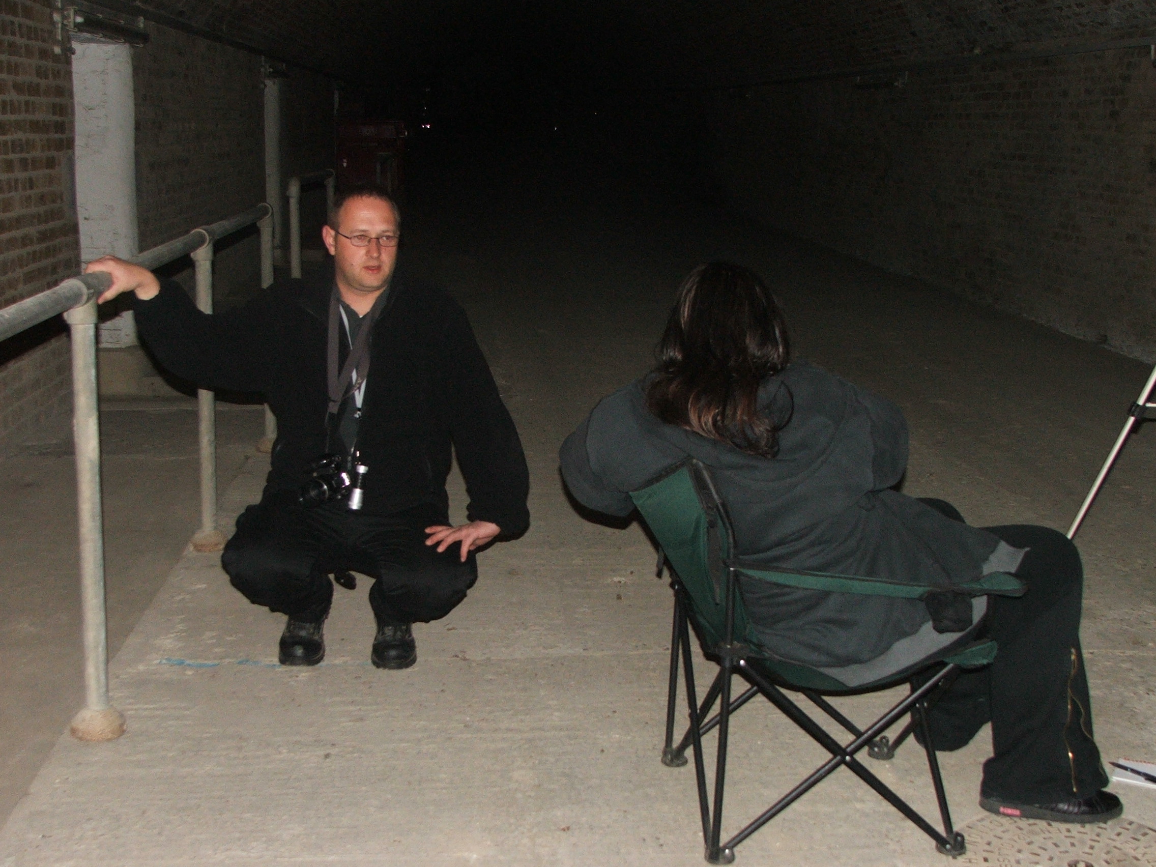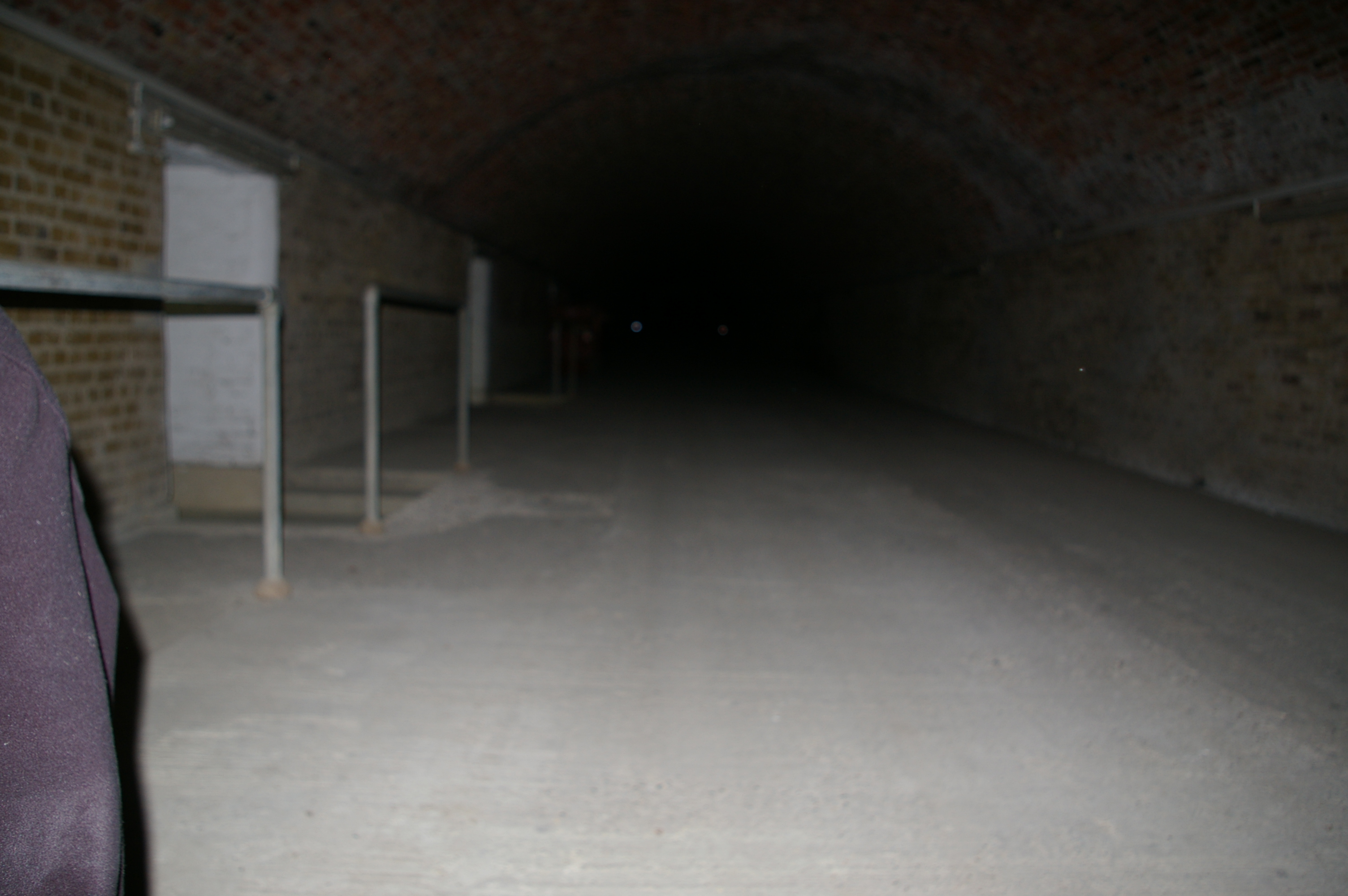As previously stated our initial intention was to explore the one area of alleged paranormal occurrence. The actual location of these reports was consistently given as in a minor corridor just off of the main entrance tunnel from the main gate onto the casemate area. The main tunnel is accessed immediately through the entrance gates and continues directly ahead for around 100 yards to the casemates. Initially upon entrance there are two further side tunnels leading up into the surface to further casemates. The reported area is a minor tunnel just past this junction which could be covered from the junction as could all main tunnels. The team set up at the junction of the major tunnels. Kim positioned herself immediately adjacent to the reported area of activity within the main tunnel. Ian sat further back towards the main entrance with Paddy and Dave within the junction able to observe each side tunnel, the main tunnel and the entrance from one position.