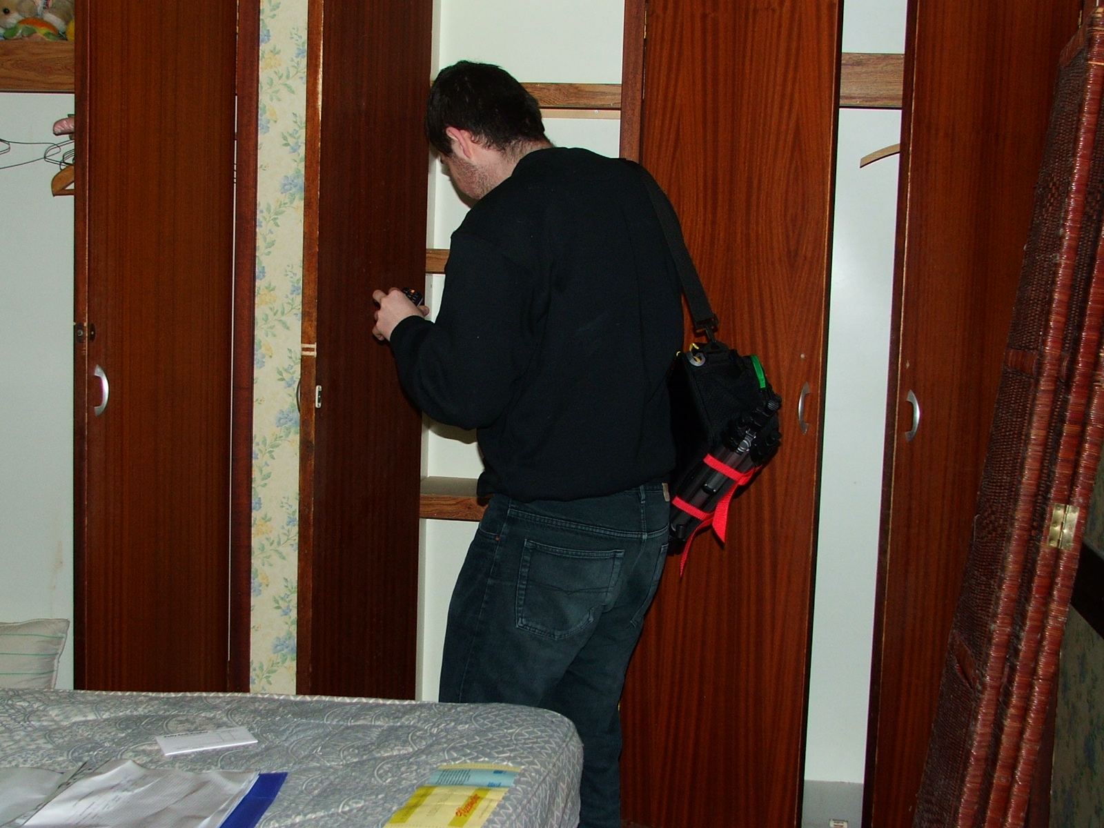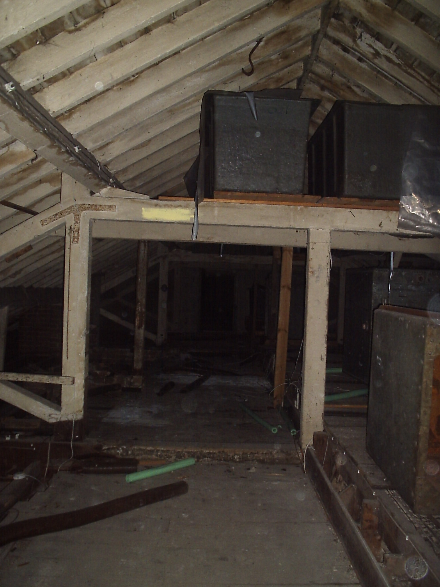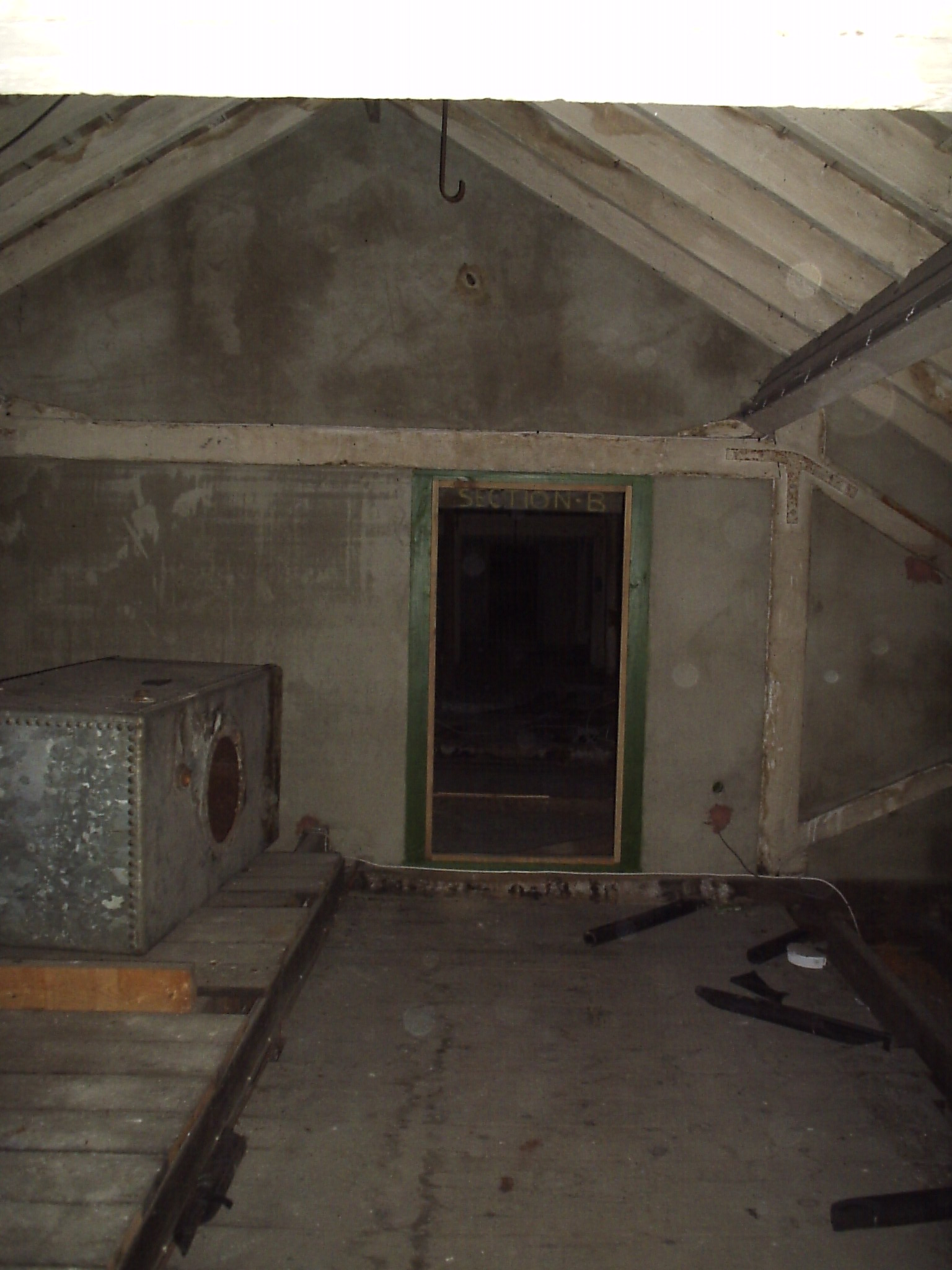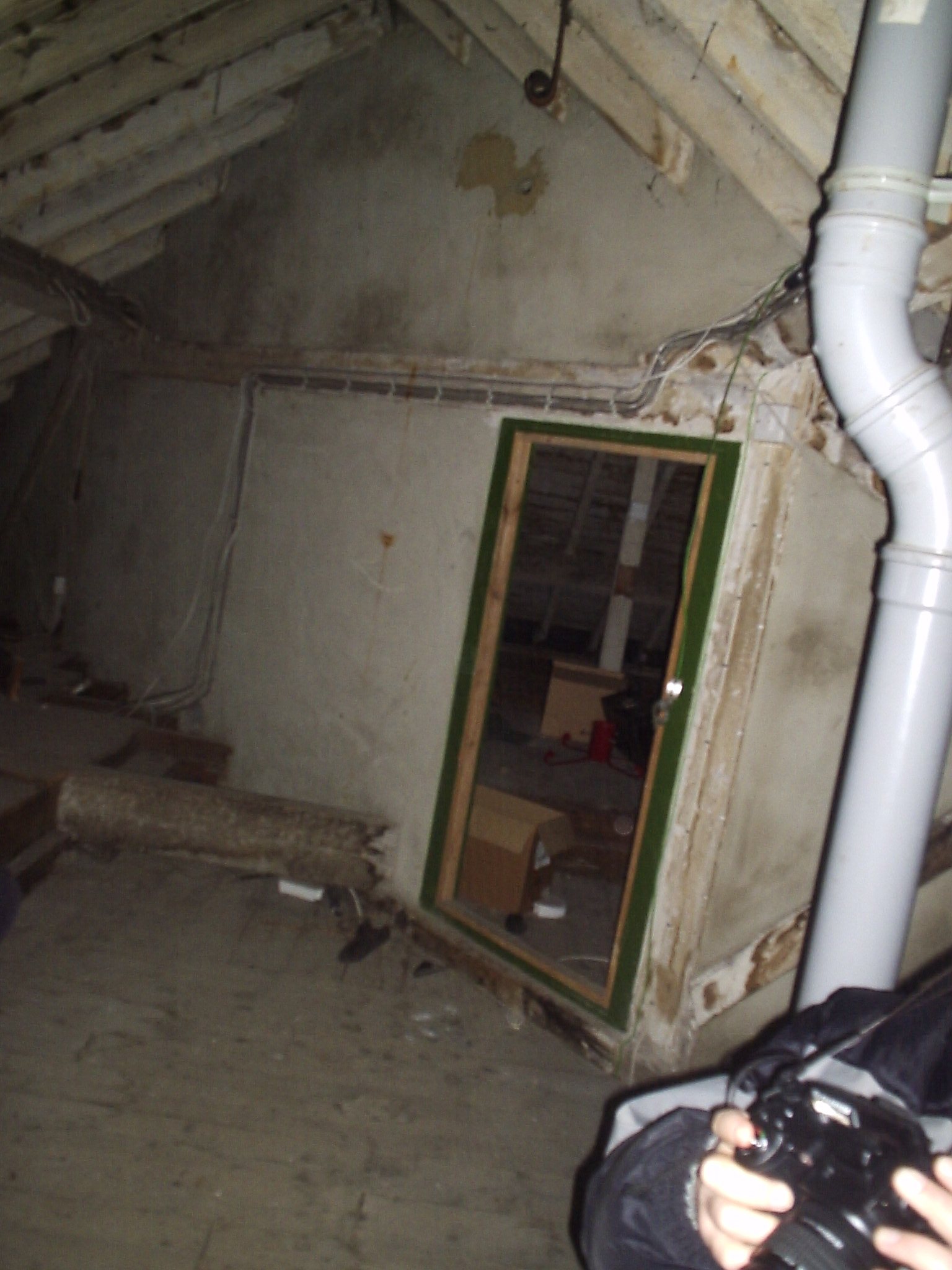 We began a vigil calling for spirit before venturing further into the attic space, which ran all along the length of the building. Sarah was bothered by and felt there was something standing in the area of the door into the loft. Rick, Paddy and Dean all heard what sounded like faint footsteps at one point that were picked up on Ian's video footage. We continued to call for spirit with no apparent results so after a while chose to explore the attic from section to section through the fire doors before deciding to leave and return to camp for a break. The video footage ends as Ian leaves the loft but immediately after this, while Paddy and Rachel were further behind, the last of the fire doors (closest too us) swung shut with a loud bang.