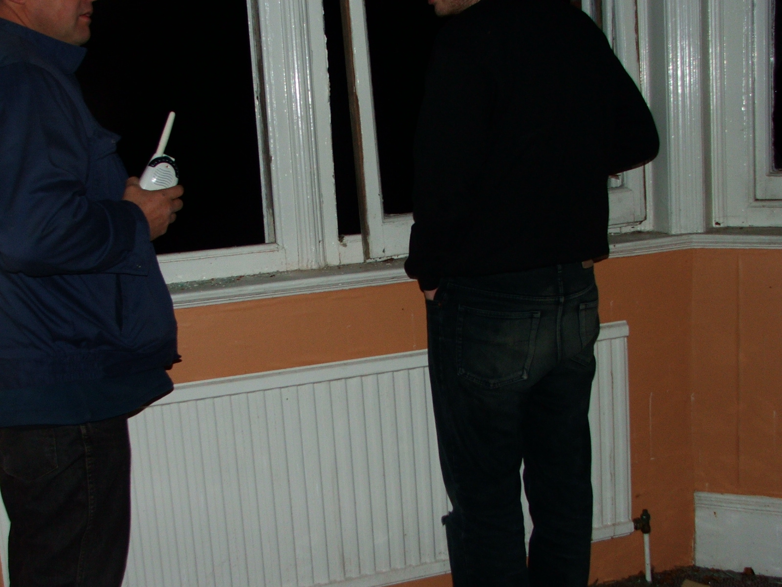 The evening was not full of spectacular results, but certainly earlier on in the investigation there was a definite sensation that there were spirit presences at this location, some may be that simply were not willing to show themselves. The attic fire door slamming and the possible footsteps heard do certainly add weight to the fact that the attic would be in contention to be possibly the most paranormally active space in the building. Knocks, bangs and clicks were heard but this could simply be building movement or the elements. A lot of the feelings we felt that night could simply be the teams nerves playing with them, as this certainly is the sort of place that has an eerie feeling about it. Nothing was caught in video apart from things previously mention, and nothing was captured photographically or by EVP apart from one thing. One loud tap was picked up on Rick’s DM-20 as though something touched the microphone? Was some having a poke with this wondering what it was? Conclusions: Thanks to: Many thanks to our new friend, the overnight security guard, who understood our interest and who allowed us access to the location all night |
