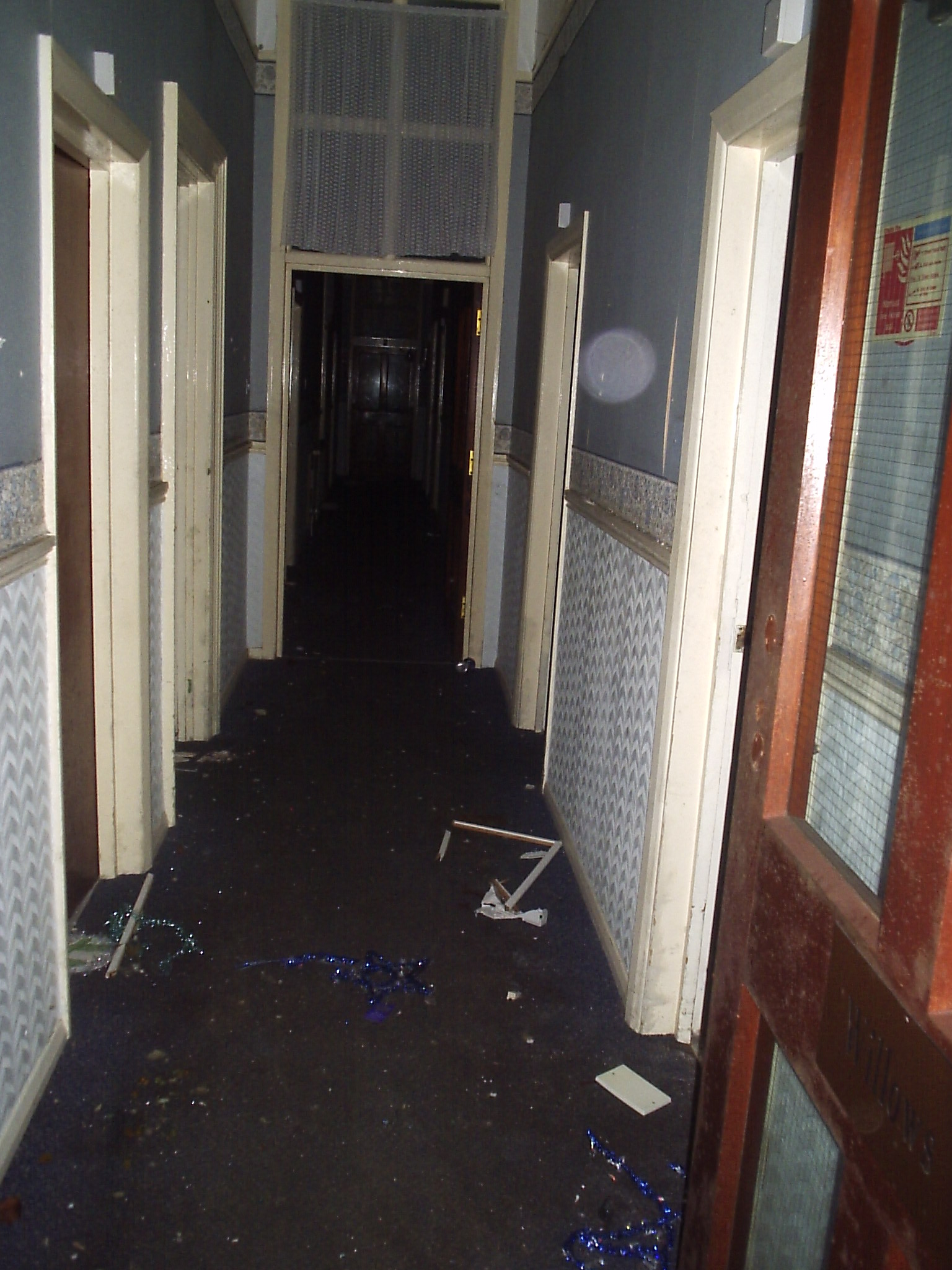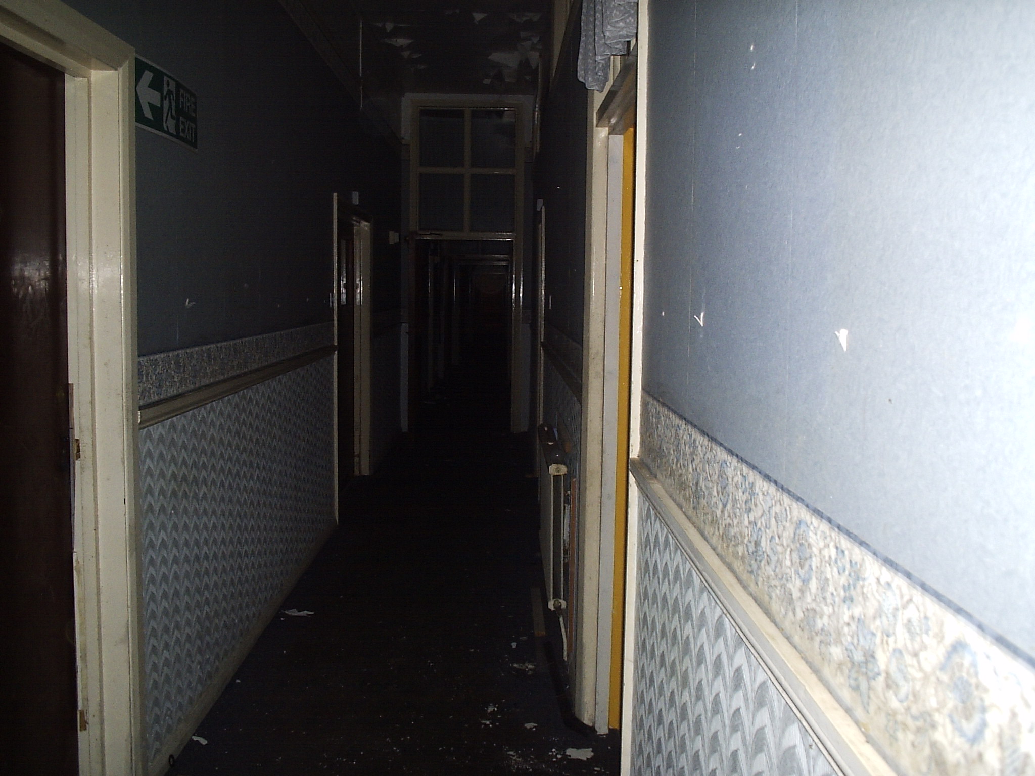 We all ran back to investigate and having examined this extremely heavy door, we could see no reason how it could have swung so furiously without being pushed shut? This unnerved us a bit so we went swiftly into a break. After the break we split into two smaller groups for our last vigil of the night, the groups being Ian, Paddy, Rachel and Dean, Rick & Sarah both groups chose a location within the building to conduct a smaller more personal vigil but there were no results to report. Our last act of the night was "The long Walk"! We discussed this at Rick’s suggestion as we were packing up the investigation, and it sounded fun, if not scary! From our base camp at one end of the building there was a long corridor to the disused main entrance, which continued from there to the other end of the building! We decided to walk one at a time, alone, to a room at the far end of the other wing of the building where we would then discuss our experiences. Paddy went first and waited alone for someone to join him at the other end of the building. We all followed on in succession till we were all assembled at the other end of the building with some unusual experiences to share.
