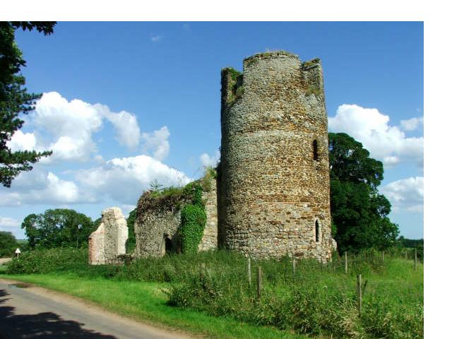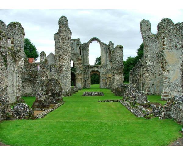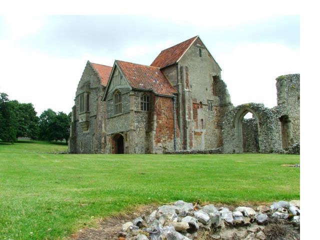 The local ales as always were going to be supped on the trip and we started with Titanic Steerage. From the Titanic brewery it is a golden ale which was not particularly to our palate and neither particularly local. Onwards and upwards! To our home for the next 4 days. Fakenham Racecourse is just outside the town of the same name and for value it had some of the most excellent facilities we have found on our travels. Catering for caravans and tents we were allocated a plot which meant we had pretty much the choice of anywhere in a field unmolested by other people. A bar and sports facilities on site catered for most eventualities. We recommend it. An early rise for a call of nature caught the rainbow bright over some trees. Looked like a good start for 5.30am. Not everyone relished being woken to see it! By the time we got organised and out the weather was looking changeable and would be bright sunshine interspersed with thunder storms and torential rain thoughout the day. It was to be a predominantly medieval day! First stop was the village of Castle Acre. Here the village retains its middle ages layout and has one of the most complete motte and bailey castles to be found at one end of the village and an equally impressive ruined priory at the other. Both under the management of English Heritage the castle is open with free access and the priory is great value for the beauty it holds in its setting and architecture. Both are from the same era and the castle is on an ancient trackway and consists of a large outer earthwork and remains of wall and gatehouses with the remains of the keep at the centre of the motte. The keep wall thickness has to be seen to be believed as it was made from converting the originally existing manor house oh the site. Unusually the bailey has not been ripped apart or built upon since and presents the most complete picture of what would have stood here with its existing foundations. You cannot help but stand within the bounds of any part of this castle and immerse yourself in a sense of what it was like 900 years ago.