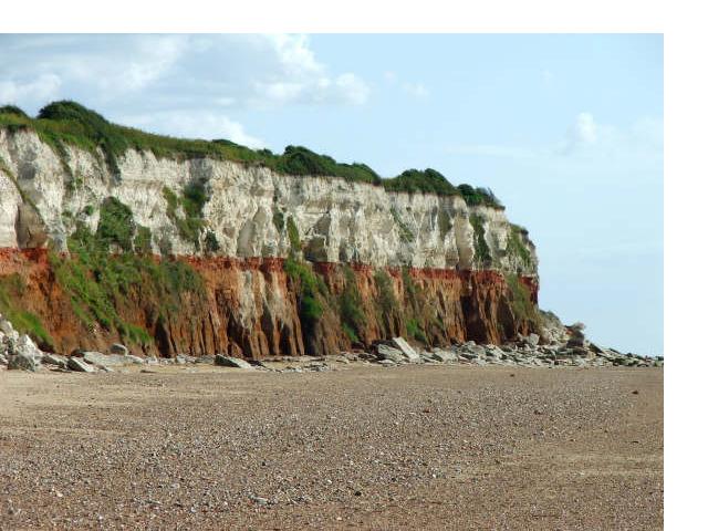 Having covered our quota of ancient monuments (as if you can ever get enough) it was time for tea. Hunstanton was nearby and was likely to harbour fish and chips. Tam's Plaice on the sea front – recommended fish and chips. Nice fresh moist cod and perfectly cooked chips with lashings of salt and vinegar mmmmm. From the seafront we went to Old Hunstanton and parked the car for a fossil hunt on the beach. There are plenty in the chalk here but we couldnt find any washed out ones even though the tide was out. The cliffs here have a unique red chalk layer under the white which makes the cliffs brightly striped. The wide shallow sands of The Wash make the North Sea seem far way.