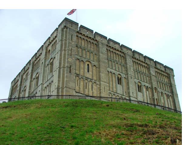 The entire cathedral is decorated with carved and painted bosses throughout the roof arches in Nave and Choir and also throughout the Cloisters. In fact those in the Nave are hardly visible from the floor. They do however tell the story of the Old and New Testaments and were carved and painted in situ. The view along the nave is cleverly increased by allowing the west doors to remain open and facilitate the photography of what is normally a difficult and gloomily lit vista. Our facination with the architecture here ate drastically into our time and suddenly found that we had to move on to get to our next destination. Colmans mustard is one of Norwich's greatest exports and they have a souvenier shop within the centre of town. This took a little seeking out (its in the arcade opposite the castle) only to find that it is not open on Sundays! If someone can explain how all other tourist attractions and most shops were open yet a shop that is itself a tourist attraction was not please let us know. To us it defies logic! It was time for a pub break! A search for a pub found us at the Bell Hotel which is a Wetherspoons establishment and has all the usual attributes of cheap, close to sell by, beer along with non-communicative staff and the local specimens who are out for a session, even on a Sunday, on the cheep booze. Anyway Golden Jackal was the selected ale at 3.8% from the Wolf brewery. A summery ale and not particularly to our palate we moved on. Somewhat refreshed we went for the ancient again and off we trudged to the castle. Now here is a Norman keep like Castle Rising and it looks a treat outside. It was the city gaol from the 15th Century and as such the interior was converted into lots of cells. Further buildings were later erected within the walls later. It has been the city museum since Victorian times and houses local exhibits and those connected with the prison. It does contain an interesting amount of Norman architecture but is so dark inside that it is difficult to admire the original building. Frankly it has been so messed about with that it is difficult to envision what it was like. The charge is broken down into access to museum/keep and additional charges for battlements and dungeons which are extra. The admission seemed expensive for what we got. We return to a previous theme of how unspoilt the outer defences at Castle Acre Castle were and consider what has happened at Norwich where as late as the 1990's the outer bailey was destroyed to create a shopping centre. The brochure even boasts that the excavation was the 'largest hole in England'. Shame on you Norwich. A wanton destruction of heritage for gain!