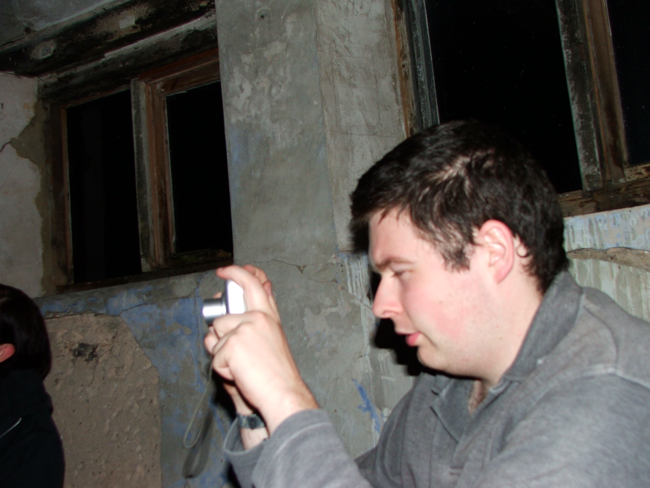 only suggest that these must have been naturally occurring. The cold drafts felt could be explained by the fact that there are broken window pains and holes in the building that were found during our last investigation, although it was a still night and there was very little breeze. Various members of the team did note seeing flashing or moving lights, there can be no explanation for this as there is no external light source and all or vigils are carried out in the dark. There were visible signs of movement from the shadows that can mostly be explained and be a result of tiredness, but not all those witnessing them felt tired and were sure something else was causing these. Dave's vision of a robe or dress walking across the room cannot be explained, but Ian's camcorder was filming in that direction during this session and nothing was caught in the footage. What was caught in the footage was a bat, again. This was on both Ian's and Dave's video footage and another was filmed in the last investigation. Now we have conclusive proof that there are bats around we have to consider that a lot of noise and sensation of movement must be attributed to this. There is no explanation for the touches felt by Kim and Dave as well as the sensations Dave was feeling during the second session. 40 minutes into the second session Dave's camcorder picked up a fast moving small light source travelling from left to right across the field of vision. Immediately after this Kim said she saw a flash by the cupboard and Paddy sees it by Dave. These may be one and the same up to that point there had only been one one moth in haphazard movement in view of the camera infra red light. No other insects or dust had been picked up to that point. Further recordings are yet to be reviewed, should anything be forthcoming this report will be updated. There was a limited amount of information forthcoming of a clairvoyant nature, but this cannot be validated. As Ghost Connections conducts scientifically based investigations we do not publish such observations, however, this information is held on a separate database. |
