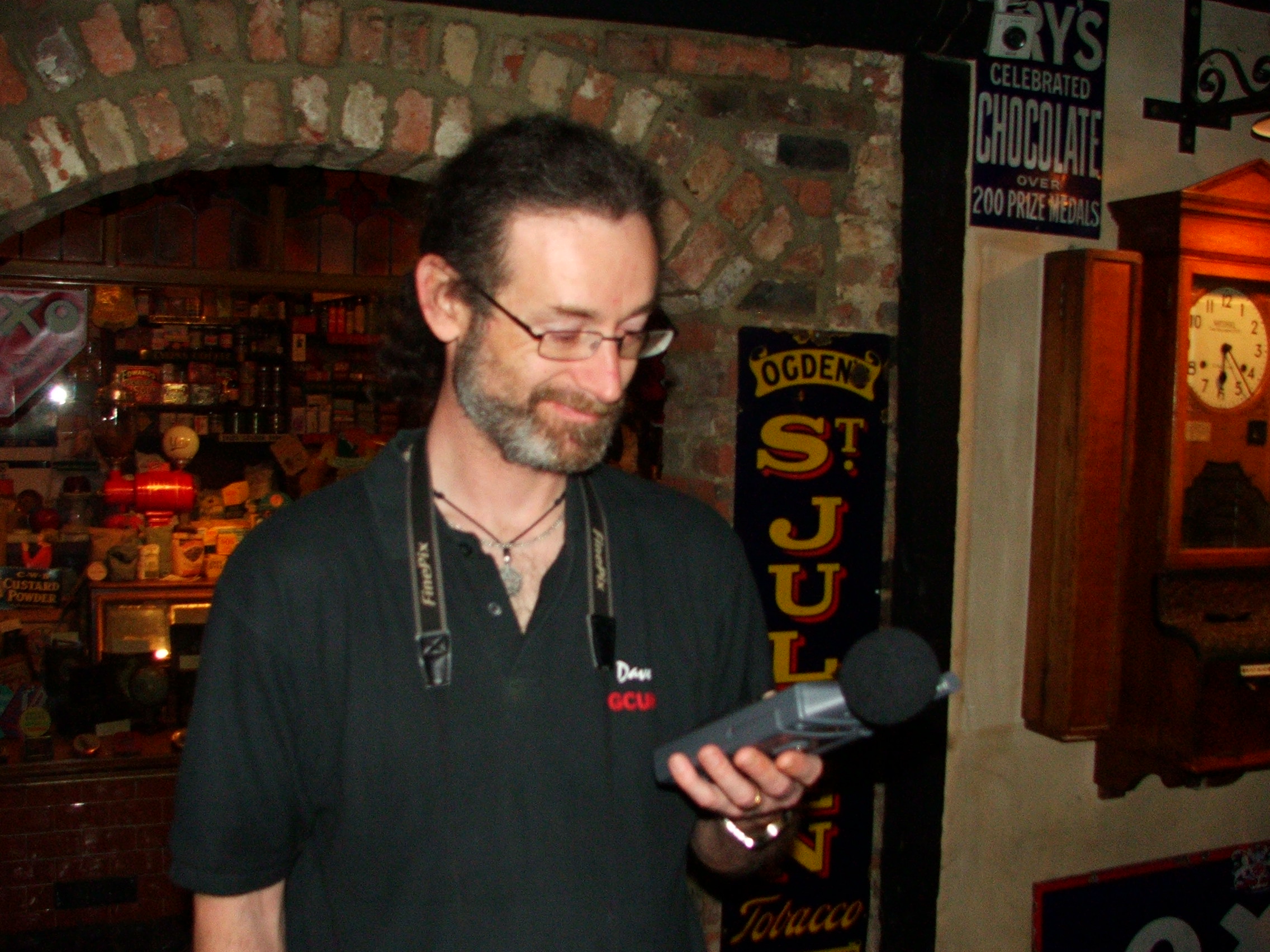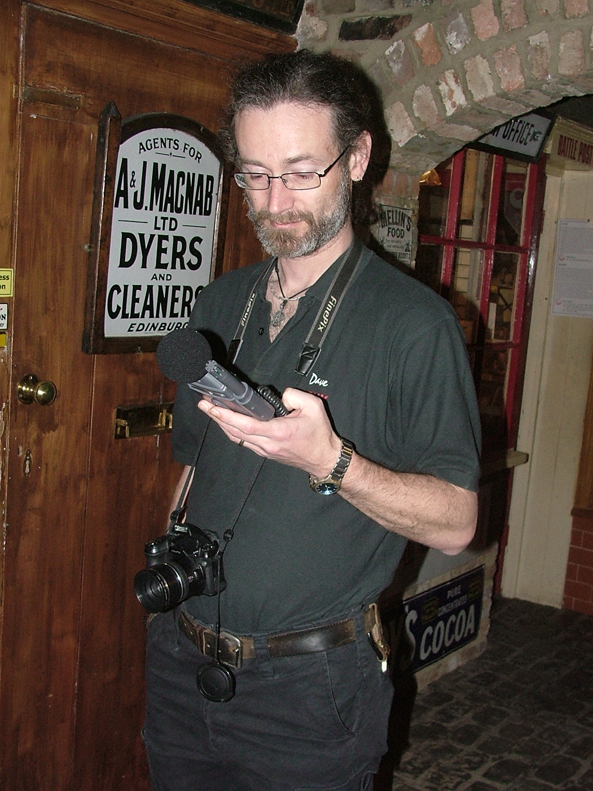 During our time in the attic Dave felt that someone was along the corridor so moved his camcorder to face that way. There is a glazed picture on the wall at the end of this corridor mounted on the chimney breast which is ahead of the view from his camcorder. From a point of about 2 – 4 mins after the cam is placed there is a movement visible on the panel which appeared to consist of a light source that expanded and contracted. We were disappointed that after further investigation into this footage it appeared that this was not a random light source, but a reflection of a standing team member illuminated by an infra red light facing the other direction, but not visible to the camera that had been filming the footage. When they sat back down the image stopped moving and disappeared. However, after leaving the third floor attic area we left our equipment outside the chemists shop ready for the next session. Dave left his digital voice recorder recording inside the chemists while we had a break. It would remain running for the next 3 ½ hours. During an interval where no one was near the chemists there are two distinct bangs heard near to the microphone, which is close to the recorder. These are close together in time and nothing similar is heard in the rest of the time the recording was being made. These bangs are currently unexplained. Also as the first séance outside the chemist ended there is a distinct voice on the audio recording. It is not one of the team. What did Ian see or thought he saw outside the chemists? Well this