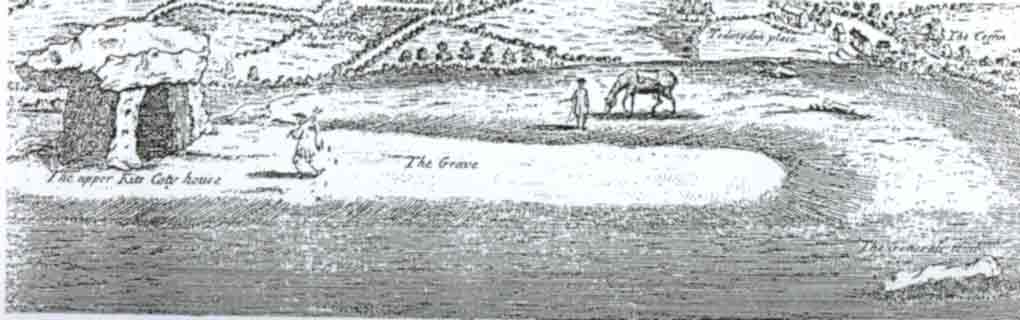 Stukeley's 1722 prospect of Kit's Coty House with its remnant long barrow