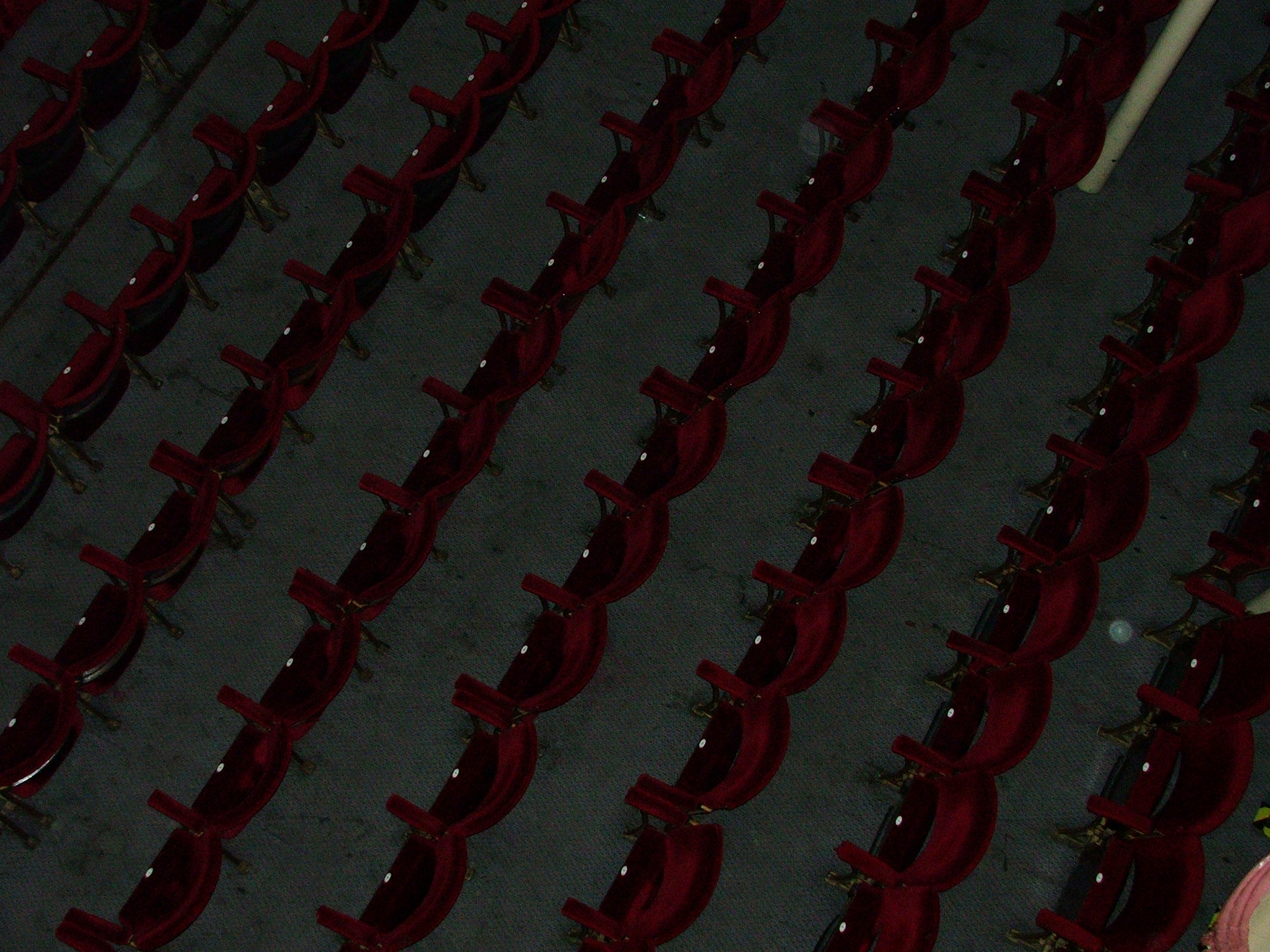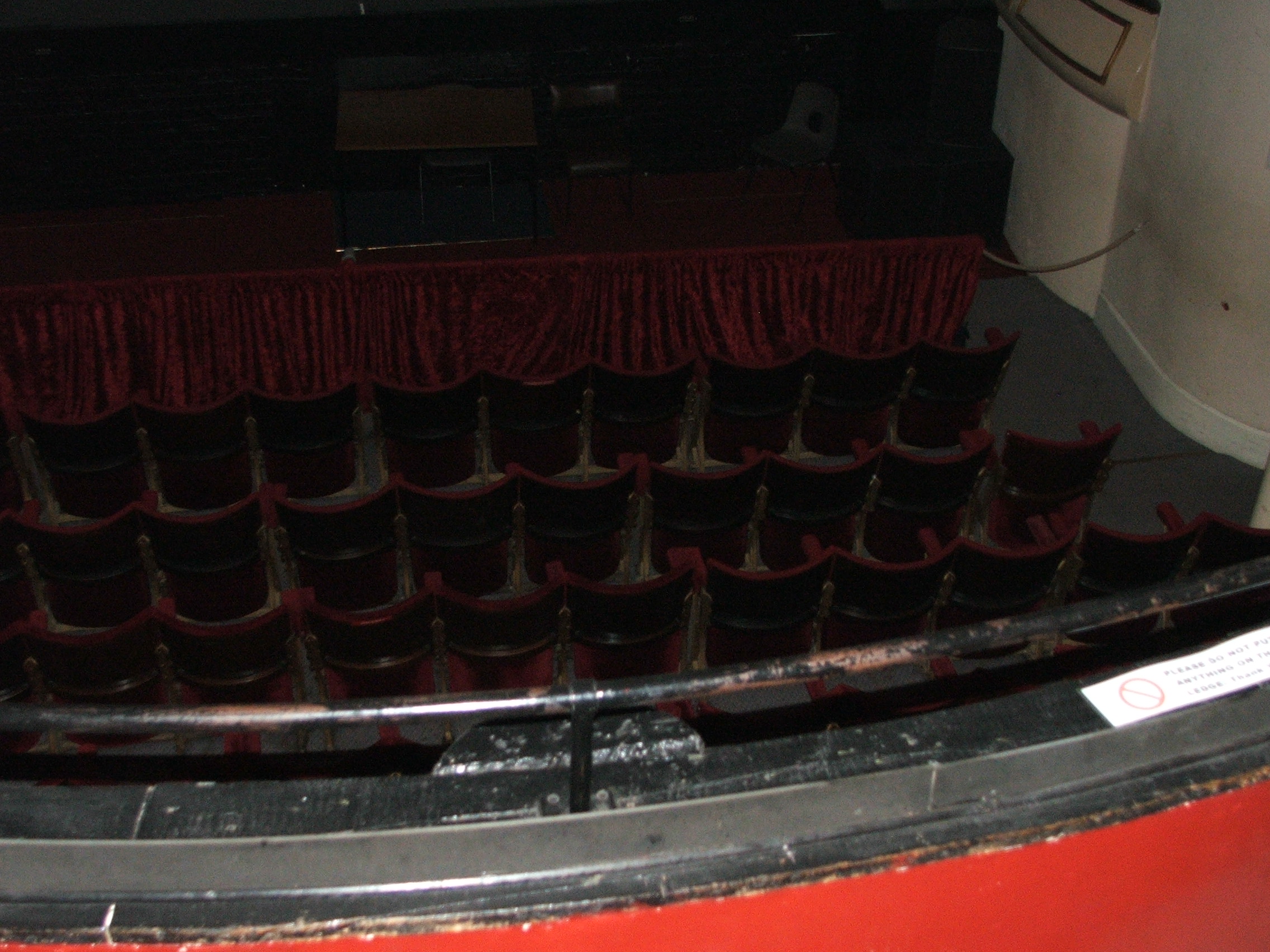 investigate other areas. Kim and Ian’s group started under the stage and then moved to the circle whilst Paddy and Dave’s group were in the circle first then under the stage. The area under the stage is divided into two halves. A set of stairs on each side lead up to the stage area. Above one side of the stage is the ‘fly’ where all the scenery ropes are controlled. In the same area Kim and Ian’s group experienced various taps or bangs. These are not seen to be significant. Temperature on the pendulum is noted to be 22.5 deg outside and 21.8deg inside. The stage was heard to creak during this time which is likely to be natural movement. Paddy and Dave’s group heard some taps and bangs in this area. Some of these may be explainable by contractions of the building. Two of them however were distinctly heard to come from the area where the team were and could not be explained. Some members of the group commented on the sound of laughter coming from the stage above. This is believed to be from some video footage being watched by the security staff in a neighbouring room. At one point Dave feels very cold. He was sat near to (and recording the pendulum) which has a thermometer attached. There was no difference in temperature seen on the thermometer. Spirit were asked to indicate their presence particularly by moving the pendulum. No discernable movement was seen. Temperature is seen to be 22.1deg outside and 21.8deg inside. The group later moved to the other side of the under stage area where to old trap door is located. Cam footage here shows a small light anomaly on cam although this cannot be identified as paranormal. This footage can be viewed on the forum (registration required). Pendulum explained – After an experiment involving a free standing pendulum which produced movement (see Tonbridge Castle ). We have further refined this into placing a freely suspended pendulum inside an airtight clear container which also has a thermometer fitted that measures the internal and external temperature around the container. Due to the sensitive nature of the pendulum it must be placed on a solid surface and as such was placed here on a pallet on the concrete floor. We then endeavour, by invitation, to get noticeable movement recorded. The circle offers views of the stall area and the front of the stage. The main stage was not visible as the fire curtain was down. In this area from Paddy and Dave’s group both Andy and Sharon commented that they saw shadowy figures in one area although nothing was caught on still or video footage. Various light features were investigated by believed to be reflections from the area’s lighting on picture frames and architectural features. During this time figures were seen to enter the stalls area. It is believed that these were persons still remaining in the theatre who it was believed were to have stayed back stage. Kim and Ian’s group followed on this area – nothing was reported. The whole group then went to the stage area and conducted an experiment with a glass. The experiment was based around the concept of four persons placing their fingers on an upturned glass on a table and asking for communication to come through the glass. Any notes were to be recorded. The rest of the group were to assist by providing their energy to the group. The whole experiment was filmed. Initially Ian, Sharon, Ginny and Rachel use the glass. No movement is made and Ian swaps with Dave. Sharon senses being pushed away from the glass. The glass was seen and experienced to move slowly and silently across the table in small amounts. We cannot explain this movement. Despite being asked nothing conclusive came of this experiment. The whole group then went to the upper circle which is a very steep area of bench seating where the rest of the theatre can be viewed. Nothing was reported here although again a light was seen on camera footage in this area. Again this can be viewed on our forum (registration is required). Some of the group then went to the corridor outside the upper circle. Nothing was reported. The whole group went to the front of the stalls and attempted another glass experiment. Nothing was recorded and no movement seen. Two photographs taken here show nothing in the first yet the second shows a misty anomaly of colours up the left side of the frame. Nothing was obscuring the lens. This cannot be explained currently. Usual precautions were taken – smoking was only allowed outside the venue.