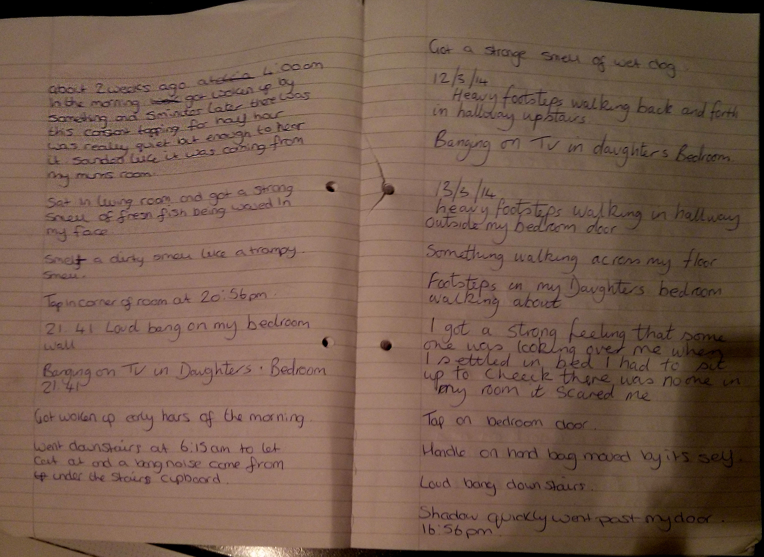 state. Feelings of localised coldness are sometimes experienced by the team but in such circumstances of this localisation we are unable to explain it. It may be purely psychological or may have been an actual event. Localised noises in the bedroom appeared consistent with the reports. No source was located. Session 3 Master Bedroom There was no heating on within the house although it had been on during the preceding hours. It was generally cold within the house and it would have been expected that the team would have been feeling quite similar in such an atmosphere. This is not what transpired, with people who were stood immediately next to each other feeling completely different. Local areas of temperature change were felt by individuals as well. This is difficult to explain as everyone was standing within a few feet of each other and would be expected to have felt an increase in temperature due to their closeness to each other. Graham would also later experience a complete change of temperature and again the same questions arise around the cause. Feelings of dizziness are difficult to explain. Whilst both Dave and S had recently walked up the stairs this was only for one floor and neither are unfit people or have a history of inner ear problems that could cause such dizziness or swaying as if on a boat. The fact that shortly afterwards Kim experienced the same makes this even more interesting given the team were in a virtually dark room and it is unlikely that Kim could subconsciously copy any movement exhibited by the other two. The 'raps' on the wardrobe were among the loudest and clearest experienced by the team on an investigation. There was no logical cause and no piping that could be responsible. It was entirely consistent with the reports. The sounds as if the cat came in were revealed by the footage. In actual fact the cat entered the room silently and was not seen. When it left the room all of those present interpreted the sound as though it were entering the room. When observed it was outside on the landing and therefore an initial conclusion was reached that it was not the cat. The evidence showed otherwise. Tingling sensations as though being touched cannot be explained. There was nothing within the room that could have come in contact with anyone within it. Kim's sighting of a black ball within the room at the same time as noises were heard is of interest. It may be a trick of the interpretation of the subdued lighting but may well have existed despite no-one else seeing it. A throat clearing type noise could have been anyone sub-consciously or a misidentification of some other noise. Kim's inability to move is worthy of exploration. Certainly both Dave and Paddy had difficulty in moving Kim's feet as well even employing a large amount of force on them. Other feelings of coldness and lights seen around the same time were noted and cannot be explained. It is the first time the team have experienced anything like this and have no explanation to give. The fact that this lasts for some 12 minutes and can be seen on the footage adds credence to the account. Only on 'release' of Kim's feet does the next event start. For an equally long period both J and B appeared to be having their arms raised and lowered to command. This is not something the team have come across often and paid extra attention to. In summary we could find no explanation for the distinct movements although it cannot be dismissed that it was either voluntary or involuntary and instigated by B and J. There is nothing to suggest it was paranormal although we cannot, equally, prove otherwise. The fact that a conversation was held and the arm movement responded is of great interest although it is not direct evidence of paranormal activity or communication. It is clearly shown on the footage and we feel it is open to interpretation. Footage below –